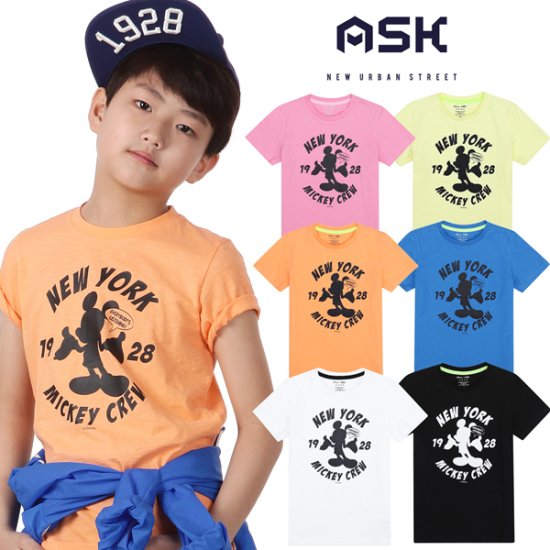 ●상품설명- 남,여아 모두 입을 수 있는 공용라인의 면티셔츠. 귀여운 미키프린트와 컬러감으로 편안하게 착용 가능한 아이템.
