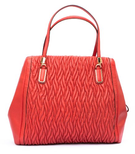 This elegantly structured satchel is updated in supple leather gathered for a luxurious textured effect. Surprisingly spacious inside, the design is finished with refined, deco-inspired hardware, top handles and a long strap for added functionality.