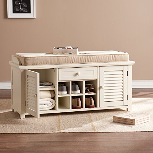 -. Title : Southern EnterP.R.Ises Antebellum Shoe Storage Bench - Antique White