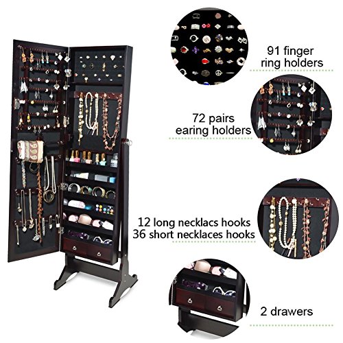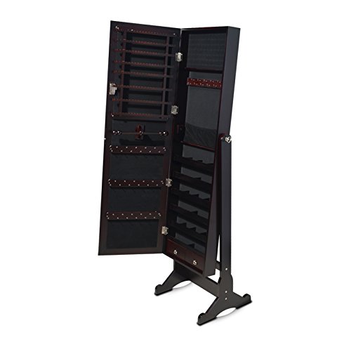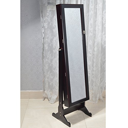 -. Binding : Home -. Brand : GLS -. Color : Brown -. Department : womens -. EAN : 0707565396837 -. Feature : Dark brown color,overall dimensions: H57''x W15.7''x D14.2'' / Floor free standing jewelry armoire,space-saving design and sturdy wood construction / Provide enough space to store your favorite jewelry pieces / 4-level adjustable angel of full length door mirror,perfect for your dressing and making up / Wooden mirror cabinet with lock and key stores all of your jewelries safely and orderly -. IsAutographed : 0 -. Label : GLS -. Manufacturer : GLS -. MPN : 114454 -. PartNumber : 114454 -. ProductGroup : Home -. ProductTypeName : HOME -. Publisher : GLS -. Studio : GLS -. Title : GLS Brown Mirrored Jewelry Armoire with Lock Floor Standing Organizer Rings Necklaces Bracelets -. UPC : 707565396837