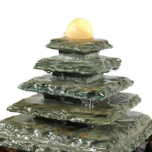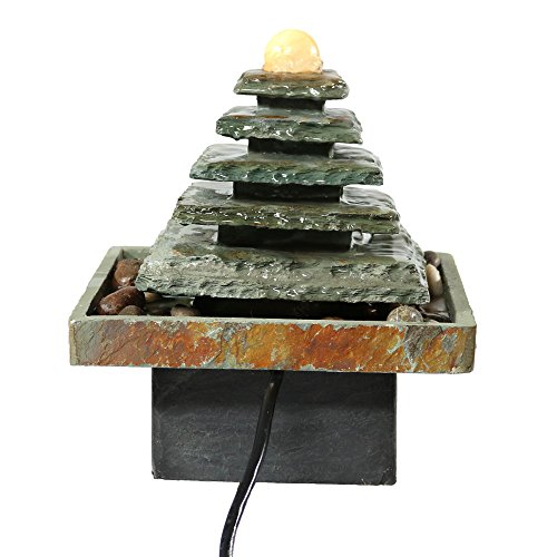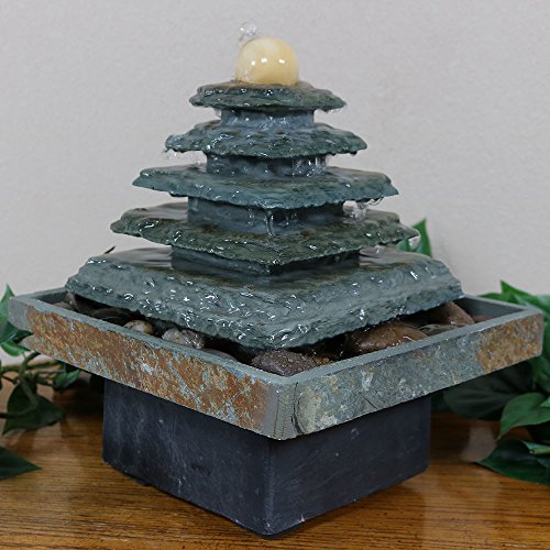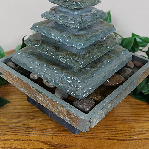 Sunnydaze Slate Pyramid Tabletop Water Fountain, 9 Inch