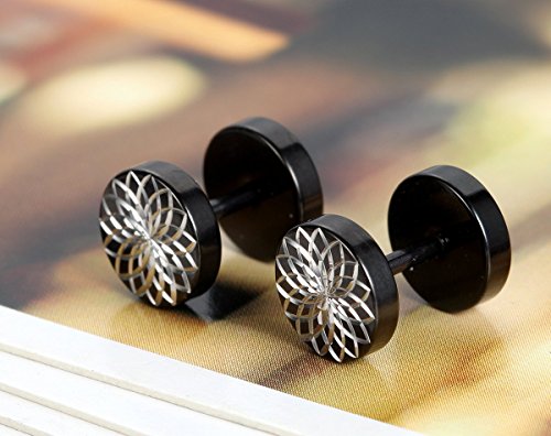 Flongo Ohrstecker, 8mm Edelstahl Ohrstecker Gestut Stecker Ohrringe Schwarz Silber Blutenblatter Blumen Muster Fake Plug Tunnel Ohrstecker Piercing Herren,Damen