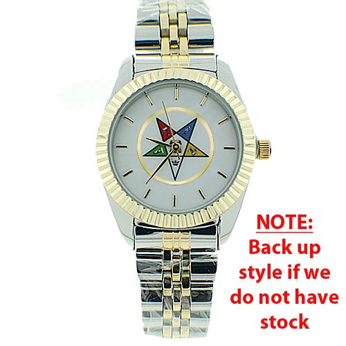 -. Binding : Jewelry -. Brand : Mason Zone -. Department : womens -. Feature : Top Quality Stainless Steel Duo Tone Gold and Silver Color Watch and Order of the Eastern Star Symbolism. Standard colorful OES logo on a white face background. Standard dial design. Band: Stainless Steel. Other Material: Synthetic and steel parts. Adjustable. One size fits most. / Order of the Eastern Star Dangle Earrings (for pierced ears) plated hooks, 5-color enamel star on silver tone background (cut out shaped) O.E.S. masonic symbol. / Top Quality Silver Color plated star shaped pendant with Order of the Eastern Star Symbolism. Includes PVC chain necklace (note chain top clasp may vary slightly). / More Eastern Star and Masonic Items Search: Mason Zone on Amazon -. Label : Mason Zone -. Manufacturer : Mason Zone -. Model : N/A -. ProductGroup : Jewelry -. ProductTypeName : FASHIONOTHER -. Publisher : Mason Zone -. Studio : Mason Zone -. Title : 3 Piece Jewelry Set - Order of the Eastern Star Pendant, Hook earrings & Order of the Eastern Star Watch. OES Symbol on Silver Gold Duo Tone Steel Band White Face