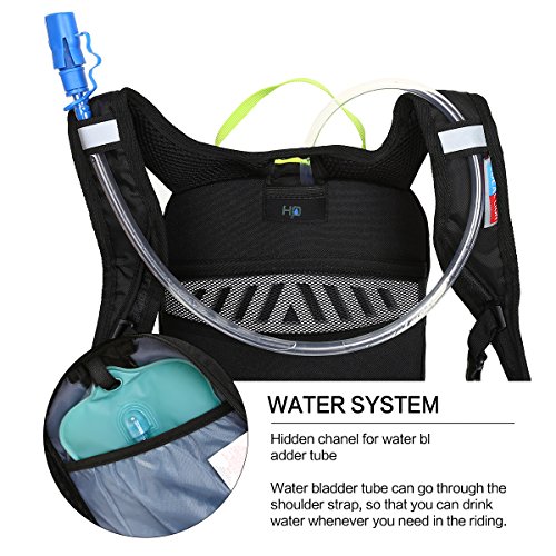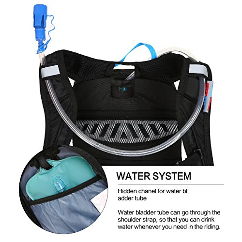 -. Feature : BREATHABLE & COMFORTABLE: Integrated breathable mesh pad on the back for maximum breathability and heat dissipation. Made of lightweight tear resistant nylon fabric, so it's very light and durable. / EASY DRINKING SYSTEM: Can be used as a drinking bag, suitable for 2 liters water bladder, special hole designed for water bladder (water bladder not included). / PERFECT FIT: Ergonomic design on the back for maximum breathability and comfort, and chest strap and waist strap can fix the bag so the bag will not move while riding. Wide webbed shoulder straps help to reduce the burden of your shoulder. / CONVENIENT & SIMPLE DESIGN: Adjustable shoulder straps and waist straps fit your cycling, jogging, running needs. Suitable for both men and women. / SECURITY GUARANTEE: Reflective strips for safe riding at night. This small backpack can be used as a faithful and versatile companion for your short trips or your sporting experience.