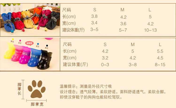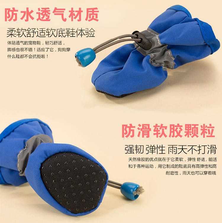 便捷松紧扣设计;透气不闷脚;防滑软胶颗粒设计;防水鞋:优质防水布,柔软舒适,超薄透气,纯色设计,晴天穿起来也很舒服;雨鞋:环保硅胶,柔软舒适,可以任意弯曲,不会磨伤磨痛小爪爪哦;选购的时候特别注意下详情页的尺寸