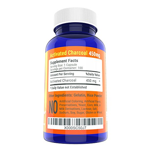 ★ BEST VALUE - STRONGER WITH 450 MG PER CAPSULE ★ providing 2X more than any other charcoal on the market. Most brands only have 250 mg, but if you look closer, they often require you to take 2 or more capsules in order to receive the complete serving of 250 mg. Two capsules are 900 mg. (100 capsules per bottle.) Charcoal helps provide relief to Bloating, Hangovers, Food Poisoning, IBS, supports Easy Digestion, and can even whiten teeth.