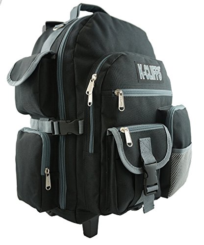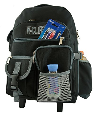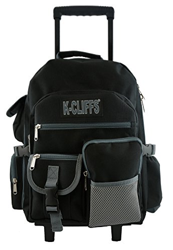 -. Binding : Personal Computers -. Brand : K-Cliffs -. Department : unisex-adult (lage only) -. Feature : Rolling Backpack made in High Density polyester with water resistant coating for School Student, Travel and Daily Use / Backpack Dimension: 18.5" x 13" x 6" / Quality Backpack with Wheels with Extra Long 39" handle length from ground to top. Adjustable padded shoulder straps with place to Store them while rolling / Heavy Duty Rolling Bookbag with Total of 10 external pockets for keeping evrything well organized. Including Fabirc water bottle pocket fits 32oz Gatorade. Deluxe Rolling Backpack with Large front pocket with Organizer. Sturdy padded fabric handle with metal D ring on each side for extra attachments / *When utilizing the rolling feature, Tuck Shoulder straps into back padded panel to avoid damage to straps. -. ProductGroup : PC Accessory -. ProductTypeName : CARRYING_CASE_OR_BAG -. Title : Heavy Duty Wheeld Backpack Deluxe Rolling Backpack School Backpack with Wheels Quality Rolling Book Bag Daypack with multiple Pockets