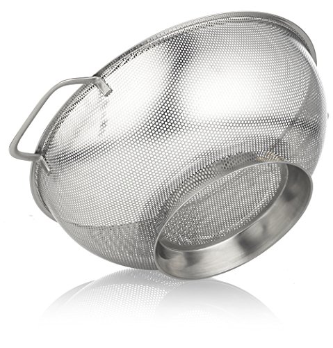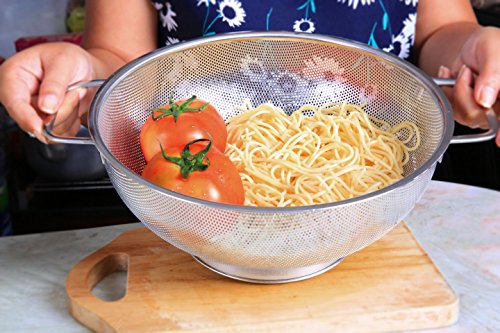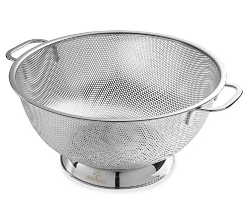 Benchusch Premium Stainless Steel Colander (5 Quart) Metal Pasta Strainer – Riveted Handles – Kitchen & Cooking Accessory