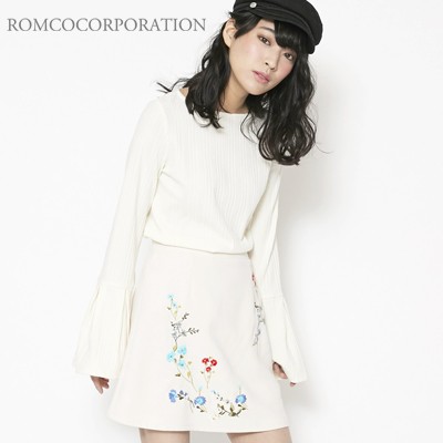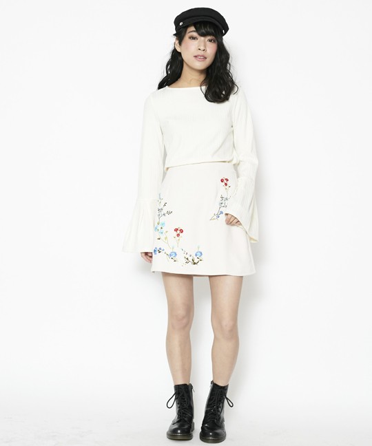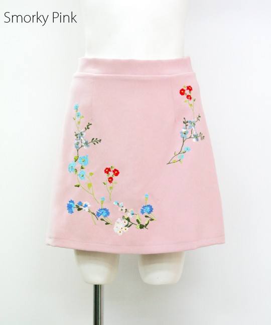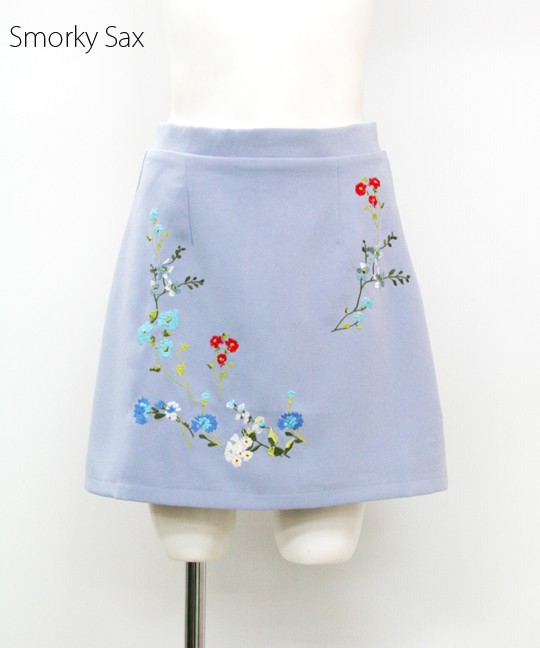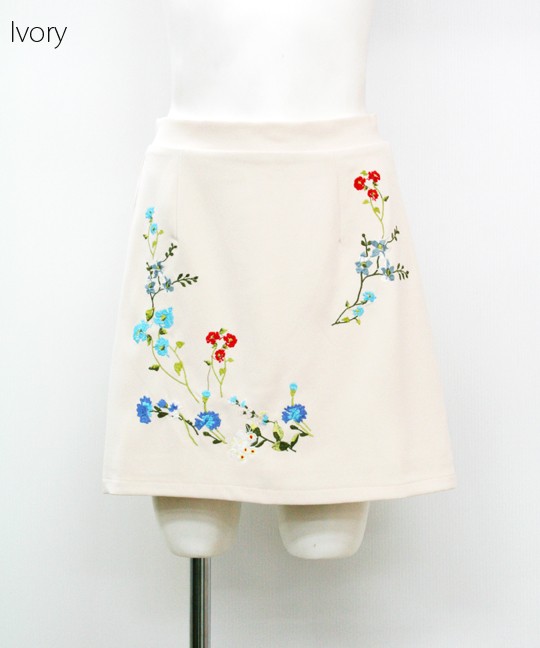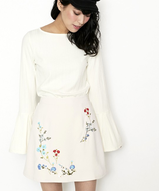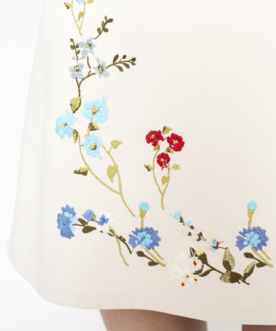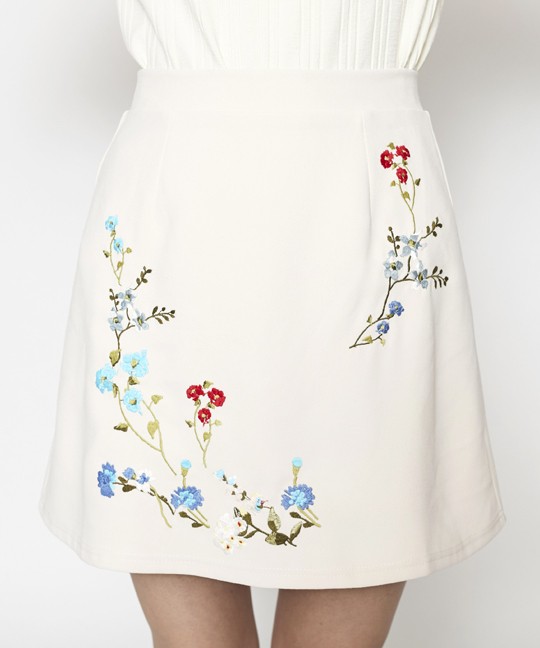 マルチカラーの刺繍がトレンドの台形ミニスカート