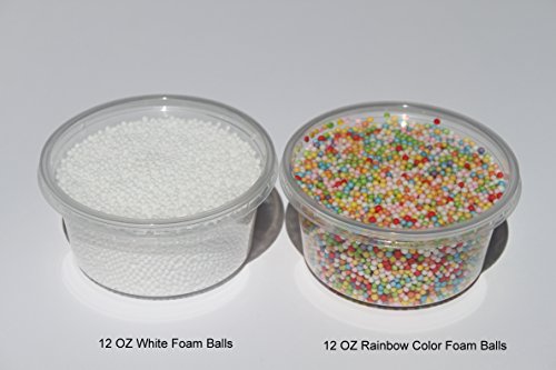 WHAT YOU GET - Foam Slime Starter's Kit. Three 4 OZ Elmer's School Glue, Half a Cup 4 OZ Borax, 12 OZ of Rainbow Assorted Mixed Color Foam Balls and 12 OZ White Foam Ball