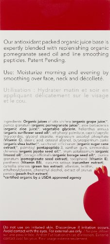 This antioxidant-rich moisturizer blends organic grape & pomegranate juices with replenishing organic pomegranate seed oil, line smoothing peptides and firming Vitamin C for a hydrated and renewed complexion.Feature