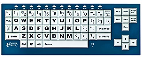 - The first Bluetooth Large-Key Keyboard. White Keys with bold black lettering. Large 1'' keys offer an advantage to people who find it painful or difficult to use a traditional keyboard. White keys with black lettering makes it easy to see. Large font is nearly 250% larger than on standard keyboards. Helps improve readability and reduce eyestrain. Oval F-keys.