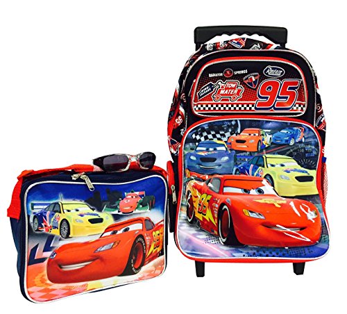 Back to School Super Saving - Walt Disney Pixar Cars Large Rolling Backpack and Cars Lunch Bag Set, Backpack Size Approximately 16"
