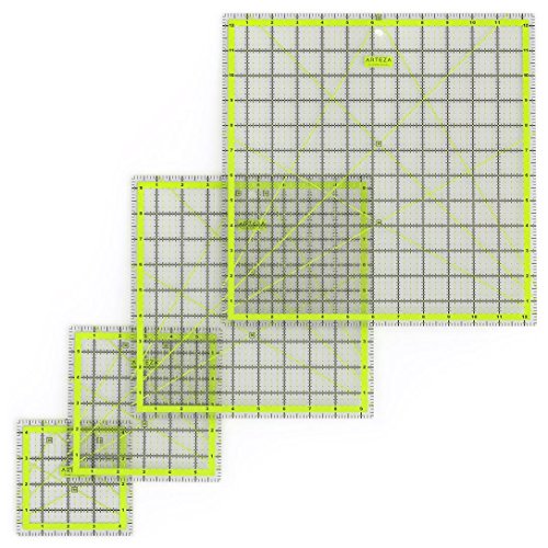 - Quilting patchwork ruler set of 4 measures: 4.5” x 4.5”, 6” x 6”, 9.5” x 9.5”, 12.5” x 12.5”