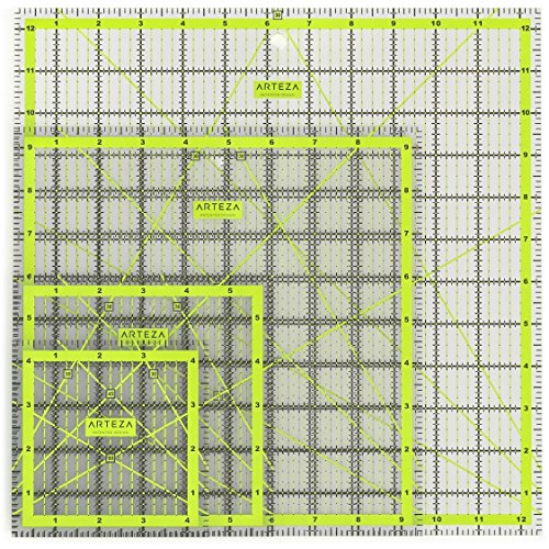 Arteza Acrylic Quilters Ruler, Double-Colored Grid Lines (4.5"X4.5", 6"X6", 9.5"X9.5", 12.5"X12.5", Set of 4)