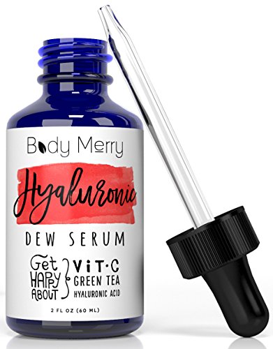 BODY MERRY HYALURONIC ACID SERUM FOR ANTI-AGING WITH VITAMIC C AND NATURAL GREEN TEA, 2 OZ