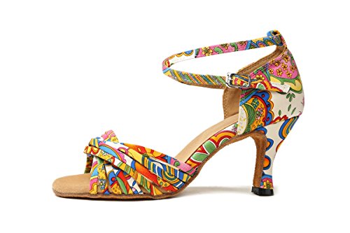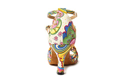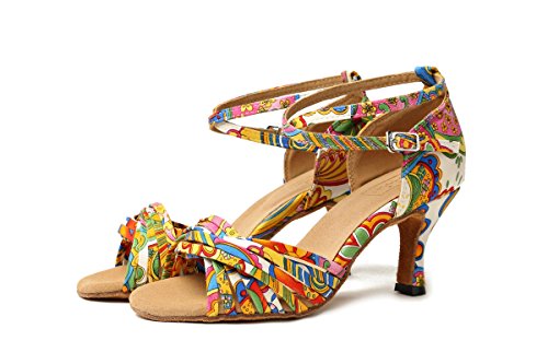 (Minishion)/Women's/Athletic Outdoor/DIRECT FROM USA/Minishion GL255 Printed Cross Strap Satin Designer Dancing Shoes Wedding Sandals For Female