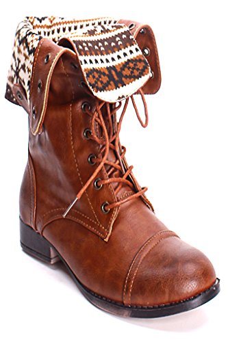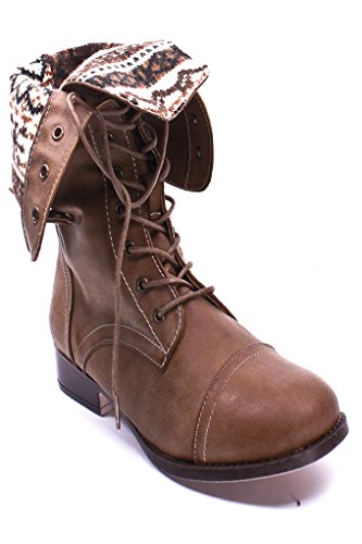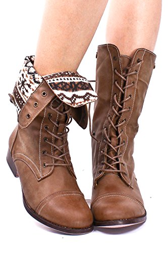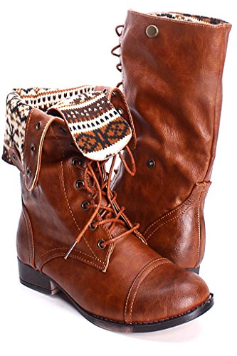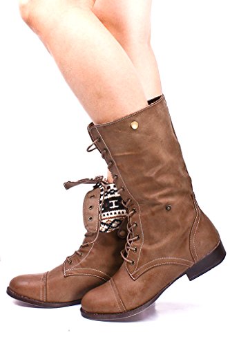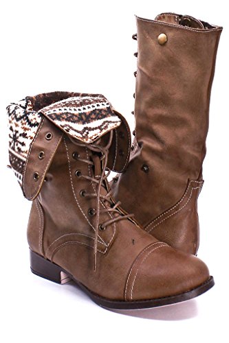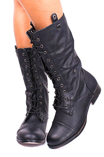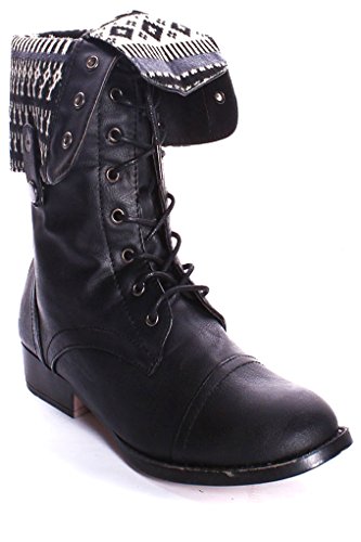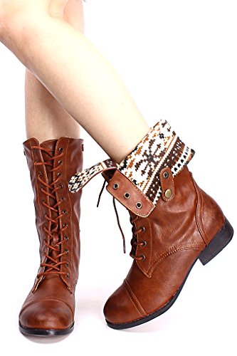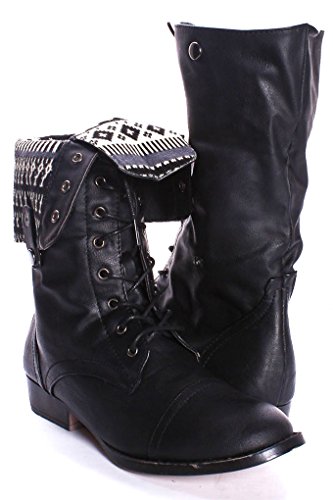 | (Lolli Couture)/Women's/Boots/DIRECT FROM USA/Elegant FAUX LEATHER LACE UP FOLD OVER COMBAT BOOTS |