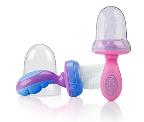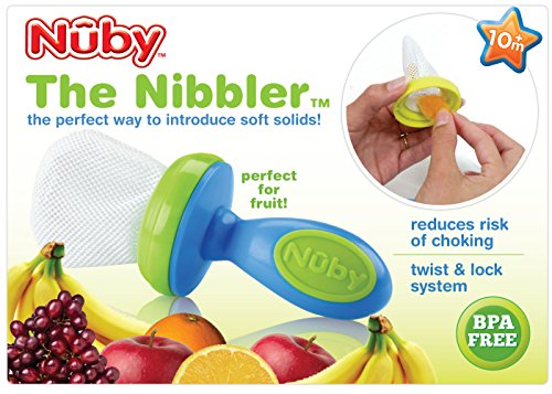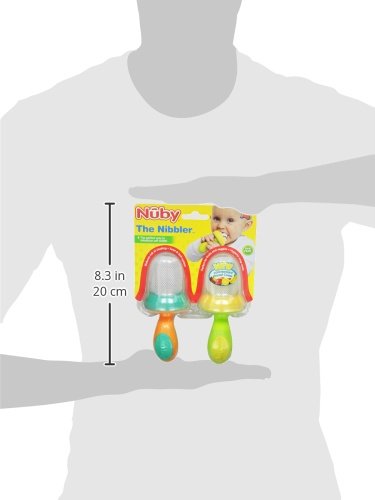 -. Binding : Baby Product -. Brand : Nuby -. Color : multi-colored -. Department : baby-boys -. EAN : 0048526053650 -. Feature : Allows your child to eat whole foods without the risk of choking / Squeeze and twist locking system that your child can safely use without the risk of opening / Includes convenient travel cover that keeps Nibbler sanitary / Colors may vary. You will receive one of the following sets: Pink/Purple, Yellow/Blue, or Green/Orange / 10 Months + / BPA Free -. Label : Luv N Care/NUBY -. Manufacturer : Luv N Care/NUBY -. Model : 5365 -. MPN : 5365 -. NumberOfItems : 1 -. PackageQuantity : 2 -. PartNumber : 5365 -. ProductGroup : Baby Product -. ProductTypeName : BABY_PRODUCT -. Publisher : Luv N Care/NUBY -. ReleaseDate : 2011-04-01 -. Size : 5" -. SKU : 0P-L4I0-9YHN -. Studio : Luv N Care/NUBY -. Title : Nuby 2-Pack Nibbler with Cap, Colors May Vary -. UPC : 048526053650