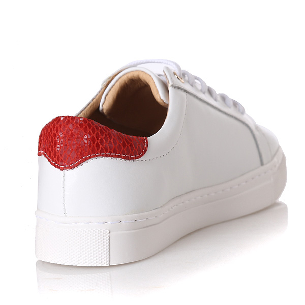 뒤쪽의 뱀무늬 칼라 콤비와 사이드부분의 펀칭 디테일이 포인트인 기본형 스니커즈. 경량 고무몰드와, 시스공법을 사용하여 가볍고, 보행시 발의 움직임에 따라 부드럽게 움직임, 복원력이 우수한 8mm 쿠션 인솔을 사용하여 발의 피로를 덜어 줌