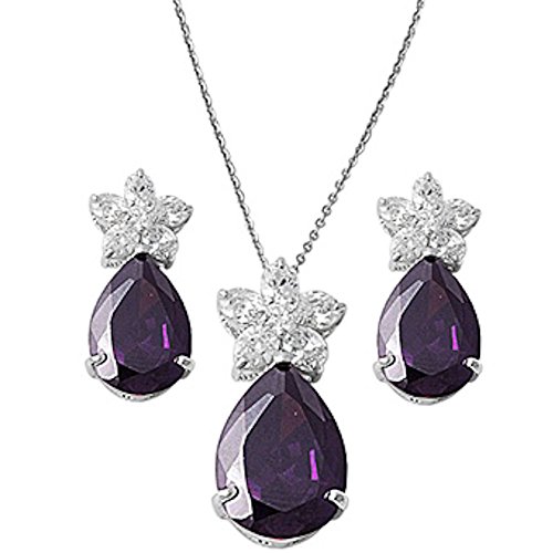 -. Title : 8Ct Pear Cut Simulated Amethyst Cz Pendant Necklace & Earring Jewelry Set Solid .925 Sterling Silver