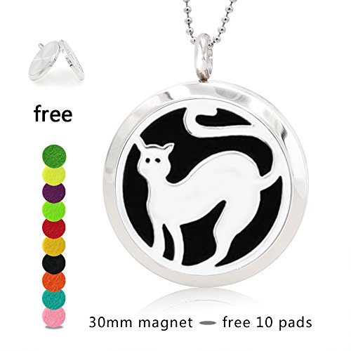 Silver Essential Oil Diffuser Necklace- YouMiYa cat key chains Perfume 316L Stainless Steel Pendant Funny Gifts For Women,Girls