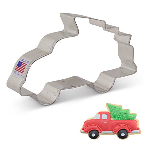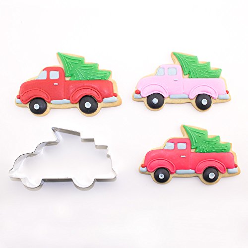 - TRUCK WITH CHRISTMAS TREE COOKIE CUTTER - This 2 7/8" x 5" cookie cutter represents the annual tradition of fastening a freshly-chopped tree to the top of your vehicle and hoping it doesn't fall off! The Truck with Christmas Tree Cookie Cutter is perfect for cookie decorating with kids or creating a cookie platter.