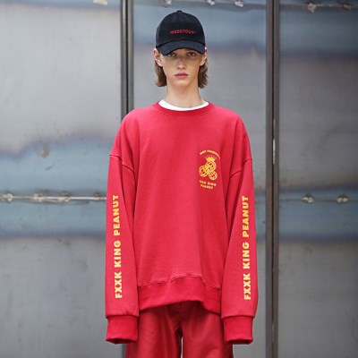 Information 제품명: 피넛 오버사이즈 스웻셔츠 맨투맨 / PEANUT OVERSIZED SWEATSHIRT 상품코드: MFECR003 색상: Red 소재: Cotton100% 제조사: Ver Company 원산지: Made in Korea 사이즈 : M, L