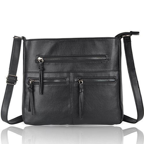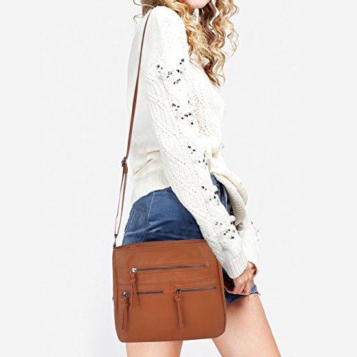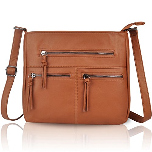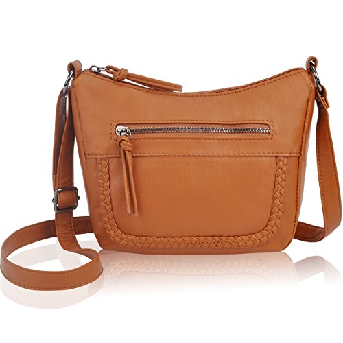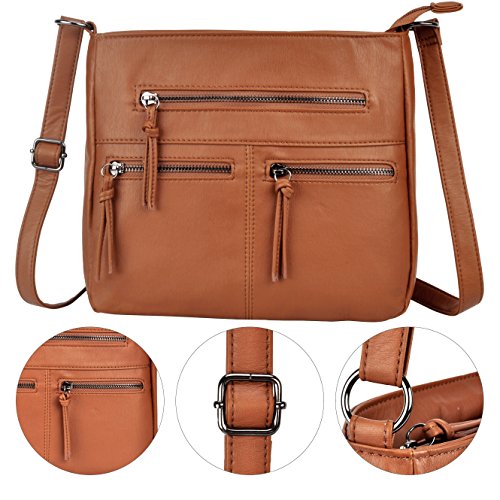 Crossbody Bag with Multi Zipper Pockets,Washed PU Crossbody Bags for Women Materials:High Quality soft washed PU Leather and Polyester Lining.