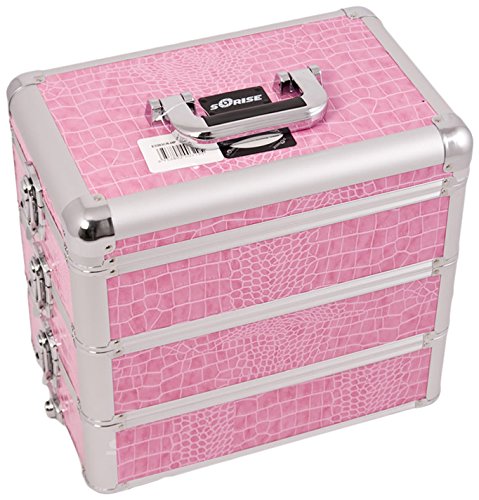 Craft Accents Professional Aluminum Cosmetic Makeup Case, Pink Crocodile, 192 Ounce