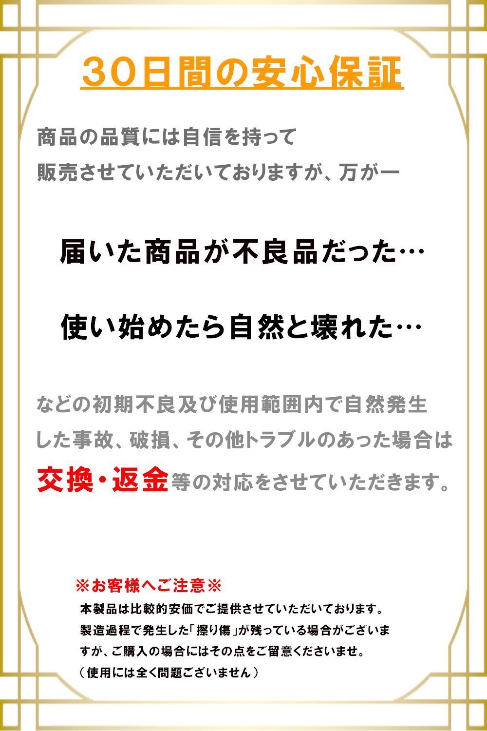 In regard to product defects of counterfeit goods and quality defects, we can not respond at all, so please be forewarned.