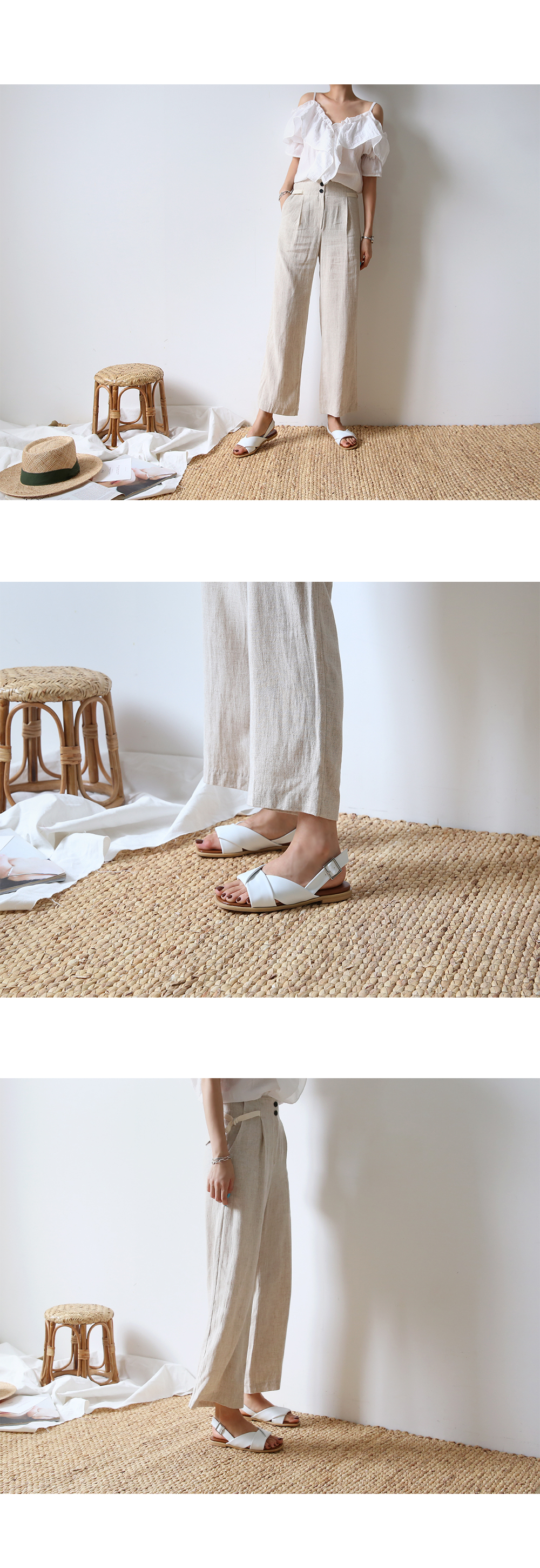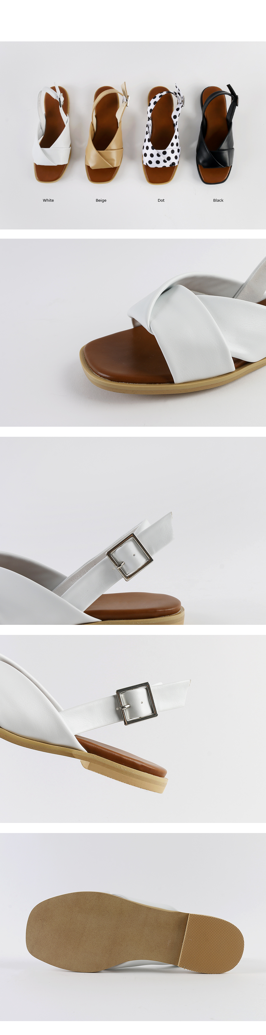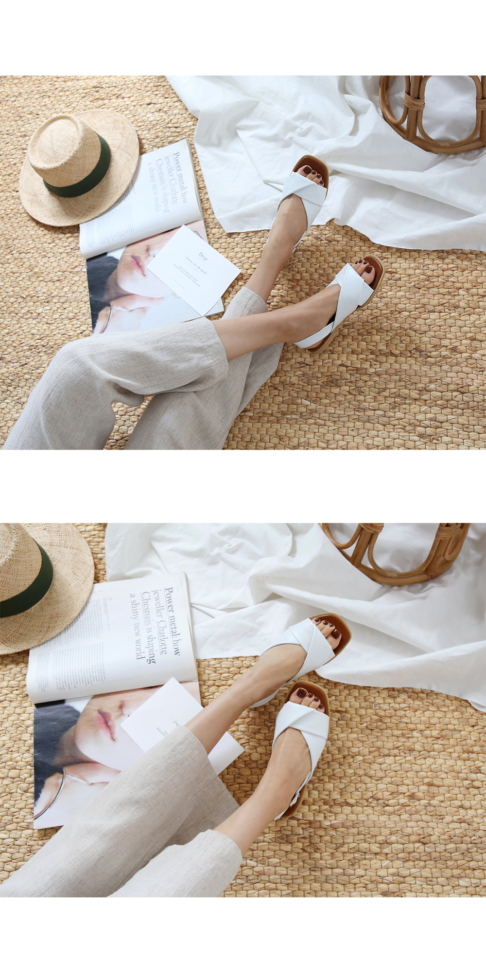 귀엽게 꼬아진 인조소가죽 소재의 슬링백 샌들입니다.