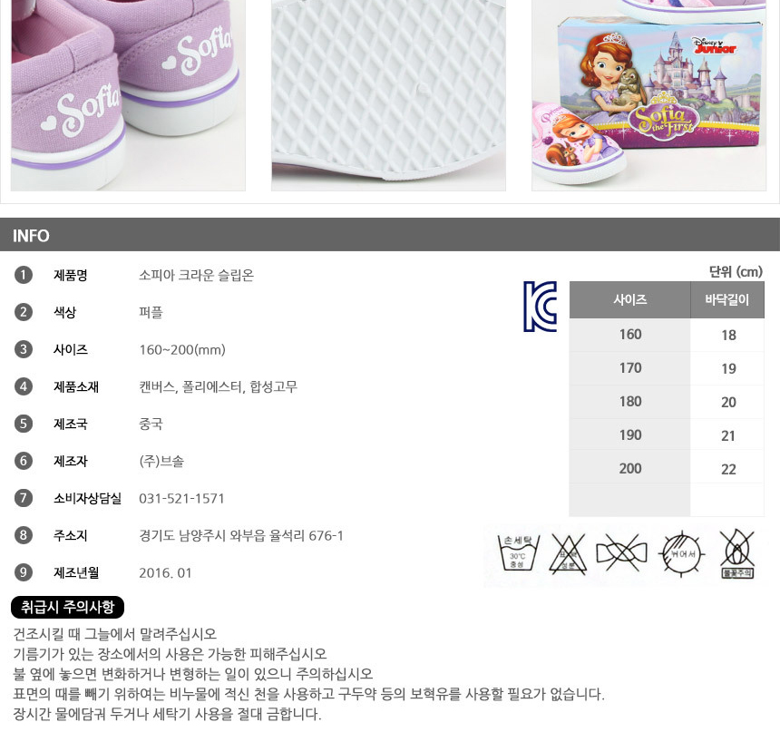 Girls slip-on sneakers Sofia character ahdonghwa