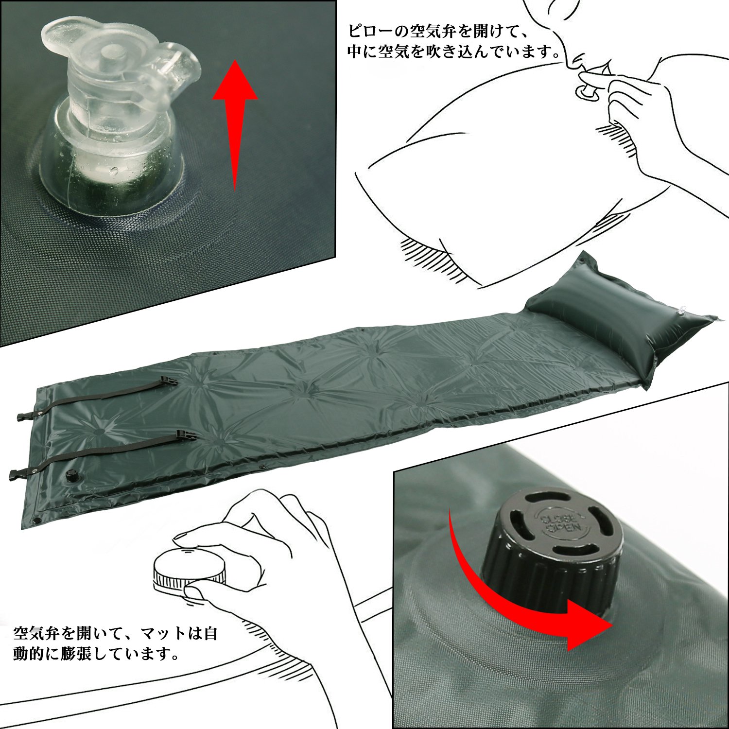 Automatic inflatable type: By opening the air valve at the bottom of the mat, the mat naturally puts in air and inflates automatically.