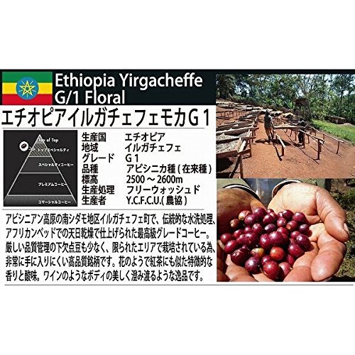 <이《루가치후》>란 커피 발상지라고 하는 에티오피아,《아비시니아》타카하라(미나베)남부의 양치《모》지방의 산지.표고1,800~2,000미터의 표고에 있고, YIRGACHEFFE지역 중(안)에서도 가장 표고가 높은 지역입니다.【생산국】에티오피아 【생산 지구】이《루가치후》 【정제 방법】WASHED 【그레이드】G1 【배전정도】풀 씨티 로스트(중심 볶아) ※이 상품은,형상의 사정상,랩핑은 불가