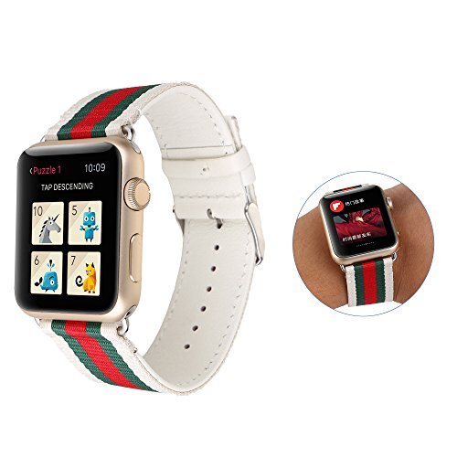 -. Feature : Designed specially for Apple Watch 42mm/38mm / Apple Watch replaceable band with stainless metal clasp, replace Apple watch band easily and directly / Made of premium light soft nylon and leather,comfortable surrounding on your wrist, anti-slip & sweat-absorbent / Precise cutting 8 hole are adjusting range is most suited to the wrist, standard length as the original apple watch band / Buy with confidence - as durable as its great looking,a prefect accessory for your watch,offer a 100% satisfaction guarantee for 90 days after purchase