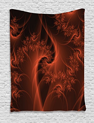 Burnt Orange Decor Tapestry Wall Hanging by Ambesonne, Digital Fractal Image with Swirling Turning Moving Floral Lines Motion Modern Graphic, Bedroom Living Room Dorm Decor, 60WX80L Inches, Orange