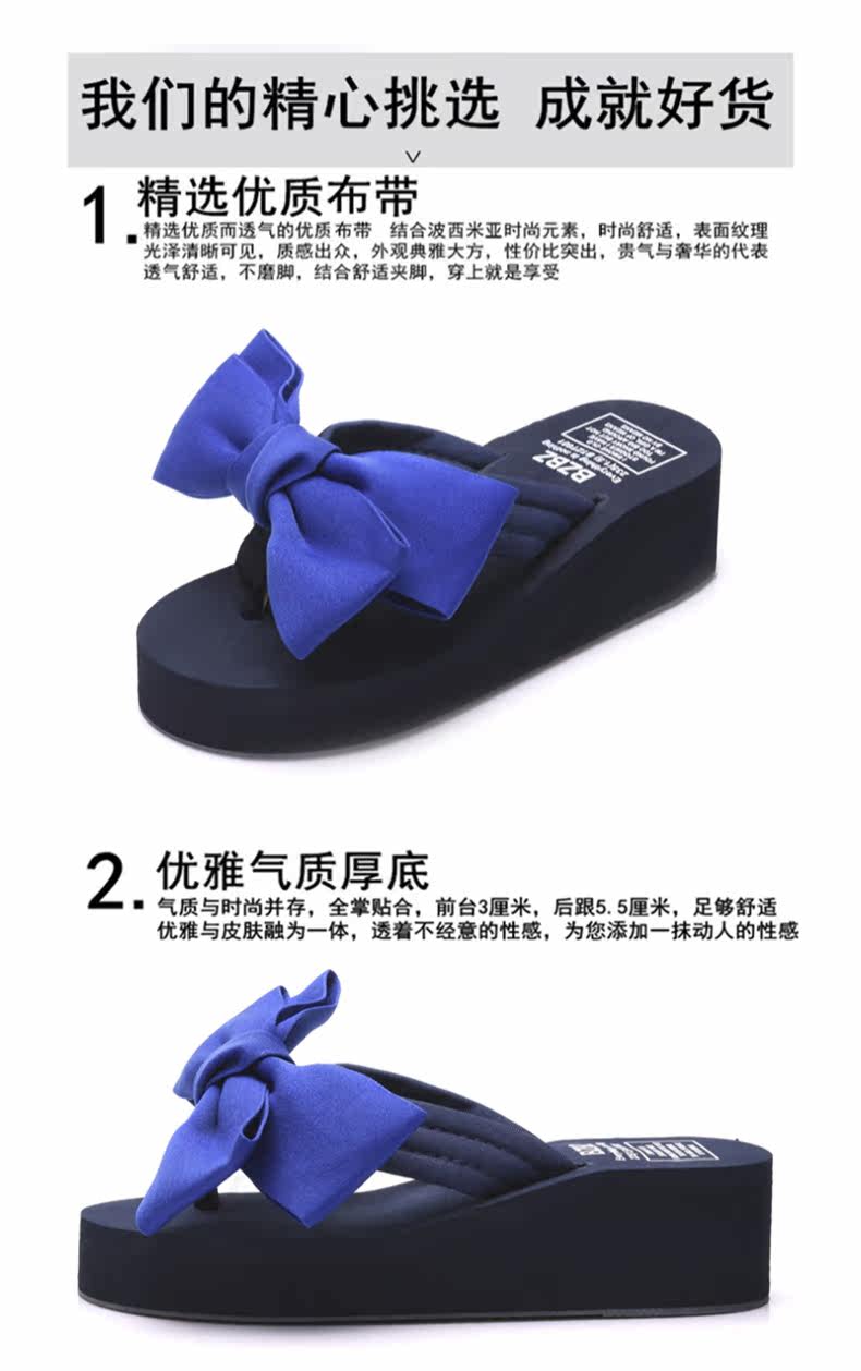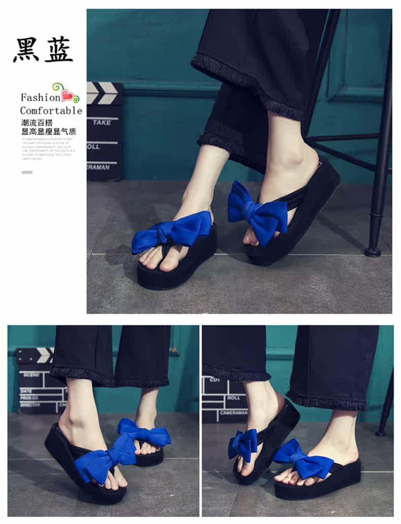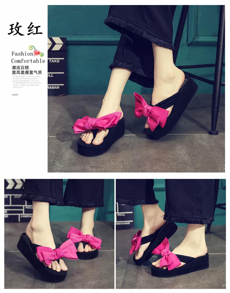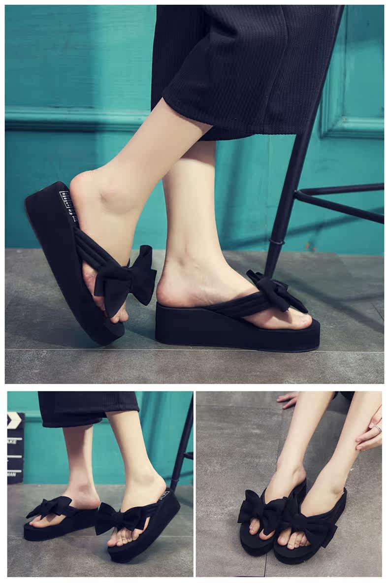 外穿高跟韩版坡跟蝴蝶结人字拖防滑厚底凉拖鞋女夏时尚夹脚沙滩鞋