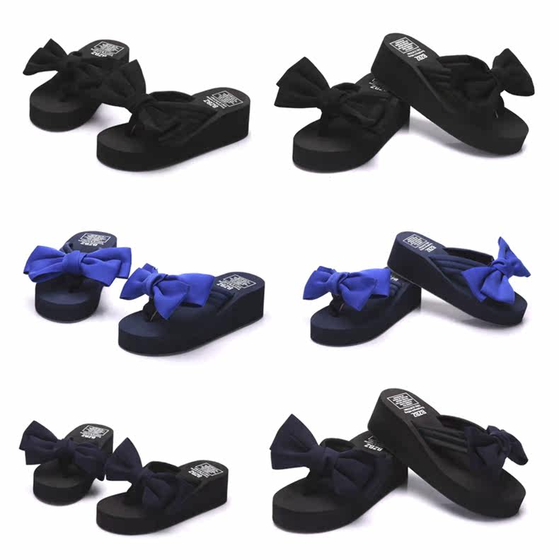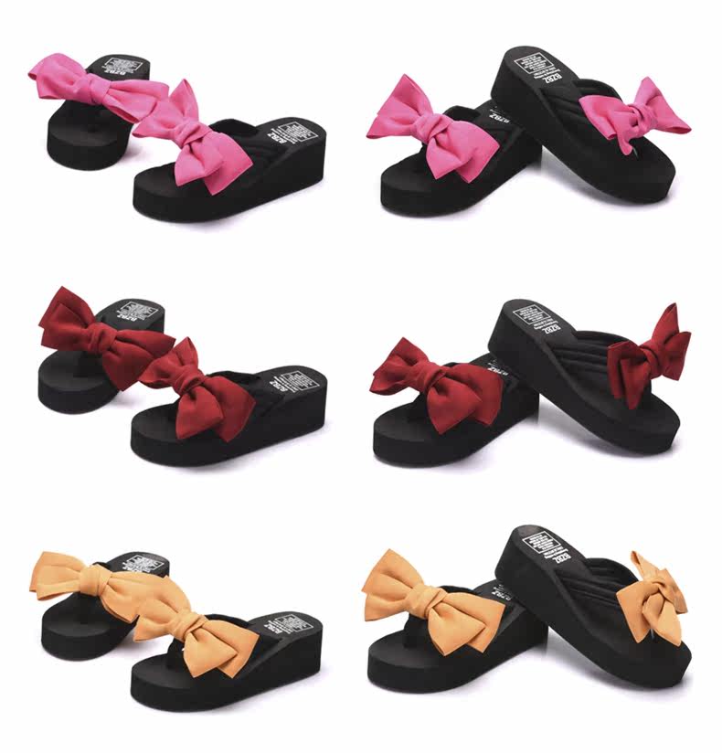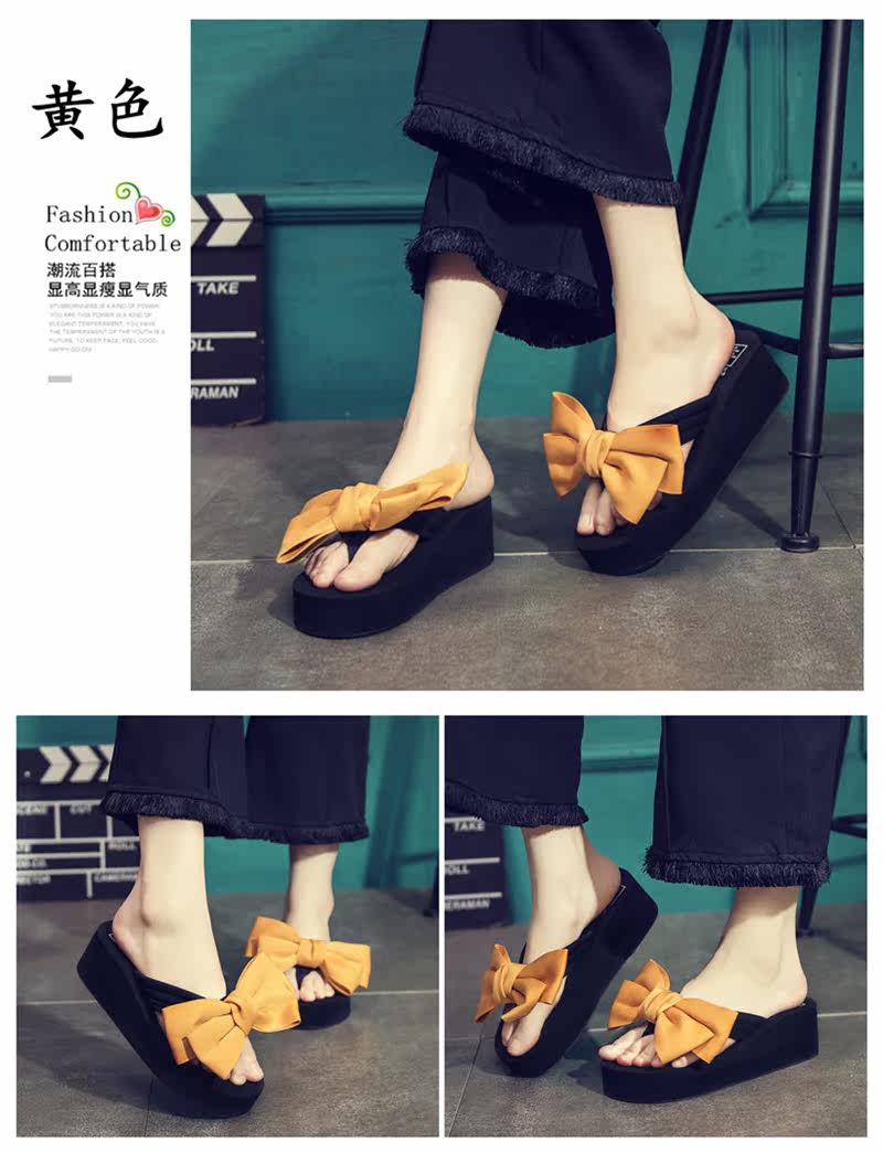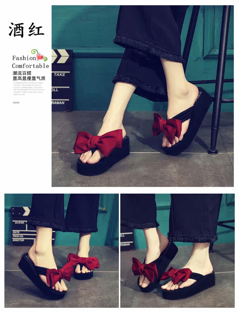 外穿高跟韩版坡跟蝴蝶结人字拖防滑厚底凉拖鞋女夏时尚夹脚沙滩鞋