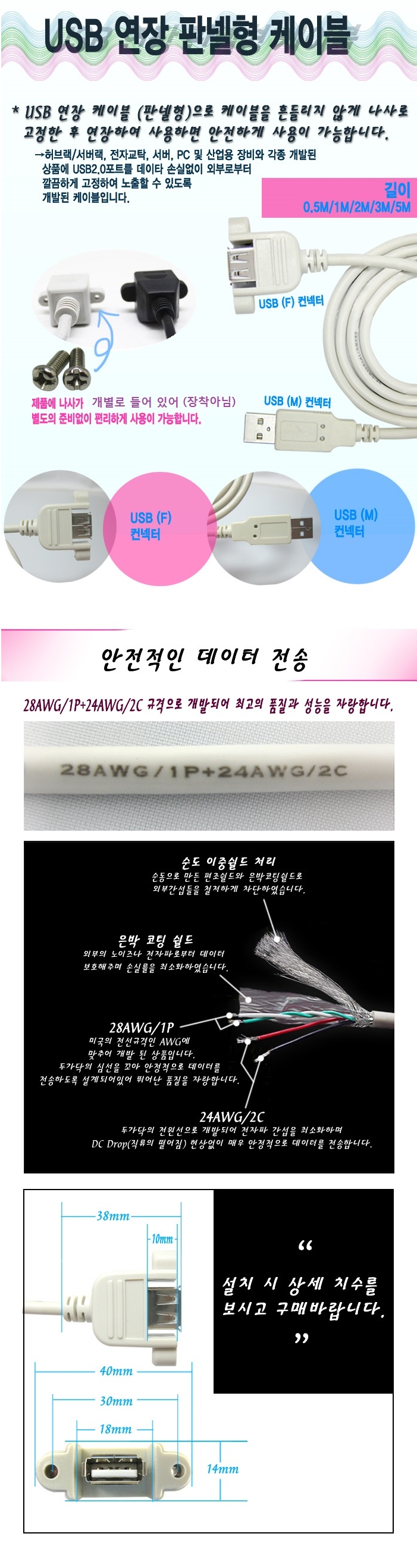 USB2.0 data transfer cable type A MF type panel,
