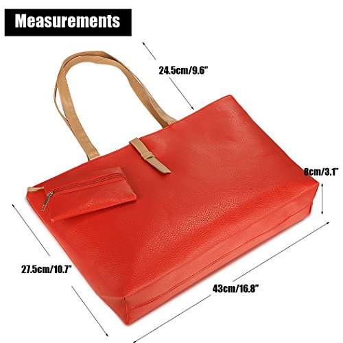 Product Description Material: Synthetic Leather Closure/Open by: Zipper Style: Tote Pattern: Solid Size: L43 x H27.5 x D8cm/16.8 x 10.7 x 3.1inch (Approx) Interior Structure: Single Zipper Wallet, Zipper Pocket, Slot Pocket Package Content: 1 x Women Handbag Note: Due to the difference between different monitors, the picture may not reflect the actual color of the item. We guarantee the style is the same as shown in the pictures. Thank you! 0