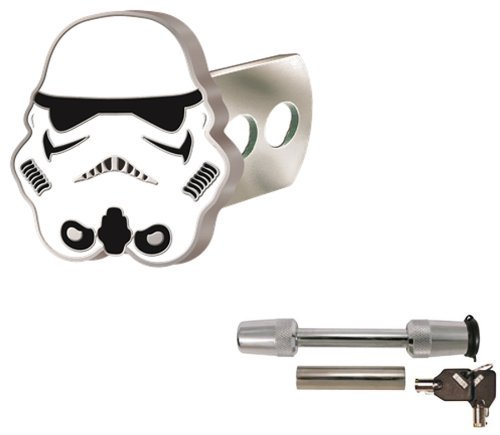 Star Wars Storm Trooper Solid Metal Brushed Chrome Hitch Plug Receiver Cover & Universal Receiver Hitch Pin Lock