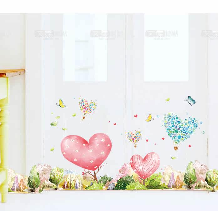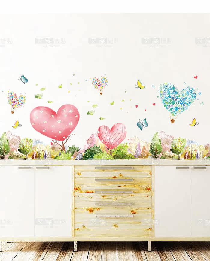 可移除墙贴 梦幻心形丛林 客厅卧室玄关踢脚线贴纸花卉蝴蝶贴画