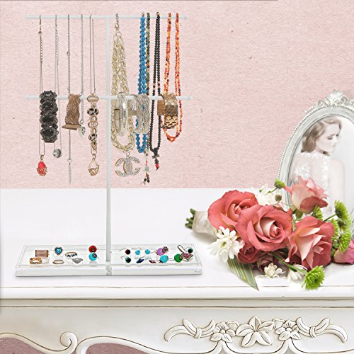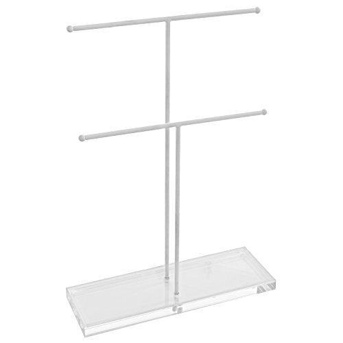 2 Tier White Metal Jewelry Storage Display Rack w/ Clear Acrylic Ring Dish / Necklace & Bracelet Holder