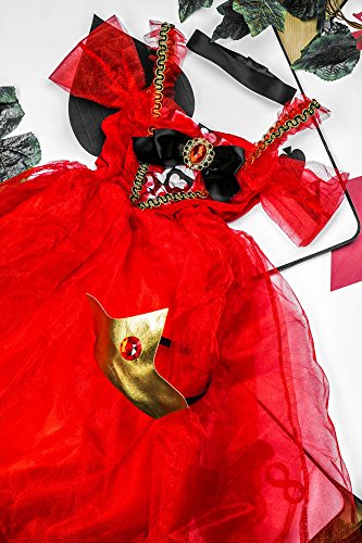 -. Brand : La Mascarade -. Color : red -. Department : girls -. Feature : Child's masquerade costume of sweet heart princess / Queen of Hearts from Alice's Adventures in Wonderland by La Mascarade Company / Cosplay costume includes velvety bodice and double layer organza skirt оn silky lining. Completed with neck ornament and crown / Great for dress up parties, pretend play, Halloween, stage performances, birthday parties, cosplay and cosplayers, masquerade ball / You may complete the fancy dress with scepter, bracelets, small earrings, elegant flats, make-up / All our dress up costumes are available in 3 sizes: for 3-6 years (3'7"- 3'11"), 6-8 years (3'11"- 4'3") and 8-11 years (4'3"-4'7"). -. Label : Mascarade WorkShop -. Manufacturer : Mascarade WorkShop -. PackageQuantity : 1 -. ProductGroup : Apparel -. ProductTypeName : CHILDRENS_COSTUME -. Publisher : Mascarade WorkShop -. Studio : Mascarade WorkShop -. Title : Girls' Princess Wonderland Queen of Hearts Royal Dress Up Halloween Costume