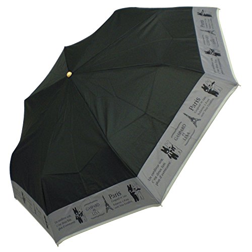 -. Title : リサとガスパール 折りたたみ傘 手開き 耐風 モノトーン ブラック 全2色 8本骨 55cm LG-208D