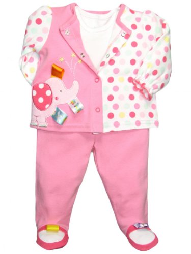-. Title : Taggies Baby Girl 3 Piece Elephant Footed Pants Outfit by Taggies
