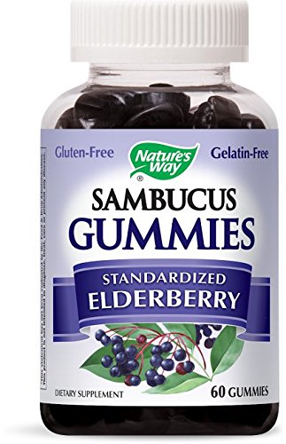 -. Binding : Health and Beauty -. Brand : Nature's Way -. EAN : 0033674104866 -. Feature : Sambucus gummies are made with unique, full-spectrum black elderberry extract; each serving delivers 50 mg of black elderberry extract, vitamin C and Zinc / Supports healthy immune function; vitamin C 150% daily value plus zinc 50% daily value / Black elderberry extract standardized to Bio Actives (flavonoids) / Gluten-free, vegetarian, great tasting / No artificial flavoring, no dairy products, no eggs, no gelatin, no gluten, no peanuts, no preservatives, no wheat, no yeast -. IsAdultProduct : 0 -. Label : Enzymatic Therapy, Inc. -. LegalDisclaimer : Actual product packaging and materials may contain more and/or different information than that shown on our Web site. We recommend that you do not solely rely on the information presented and that you always read labels, warnings, and directions before using or consuming a product. Content on this site is for reference purposes and is not intended to substitute for advice given by a physician, pharmacist, or other licensed health-care professional. You should not use this information as self-diagnosis or for treating a health problem or disease. Contact your health-care provider immediately if you suspect that you have a medical problem. Information and statements regarding dietary supplements have not been evaluated by the Food and Drug Administration and are not intended to diagnose, treat, cure, or prevent any disease or health condition. ABC Wholesale assumes no liability for inaccuracies or misstatements about products. -. Manufacturer : Enzymatic Therapy, Inc. -. Model : 33674104866 -. MPN : 1606904 -. NumberOfItems : 1 -. PackageQuantity : 1 -. PartNumber : 1606904 -. ProductGroup : Health and Beauty -. ProductTypeName : HEALTH_PERSONAL_CARE -. PublicationDate : 2016-06-09 -. Publisher : Enzymatic Therapy, Inc. -. ReleaseDate : 2016-06-06 -. Size : 60 -. Studio : Enzymatic Therapy, Inc. -. Title : Sambucus Elderberry Gummies Herbal Supplements, 60 Count -. UPC : 795871597413