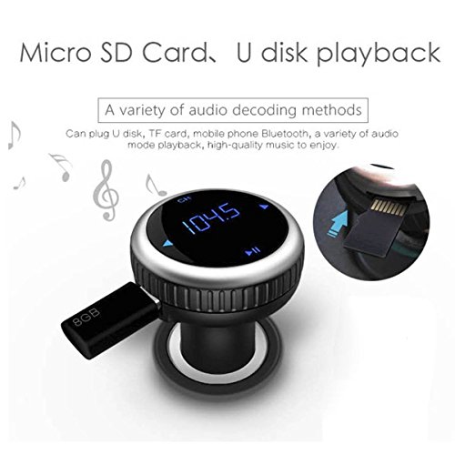 Broad compatibility : Car fm transmitter works with Bluetooth enabled devices, like iPhone, iPad, iPod, Tablet, Smartphones or MP3, MP4 Players via 3.5mm audio jack.Simply plug into cigarette lighter socket, Control directly as an FM transmitter.