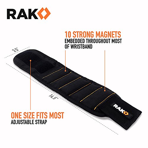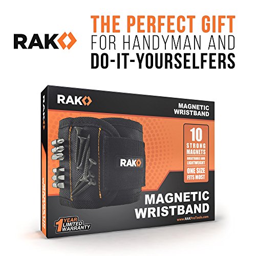 RAK Magnetic Wristband (1 Pack) with Strong Magnets for Holding Screws, Nails, Drill Bits - Best Unique Tool Gift for DIY Handyman, Father/Dad, Husband, Boyfriend, Men, Women (Black)